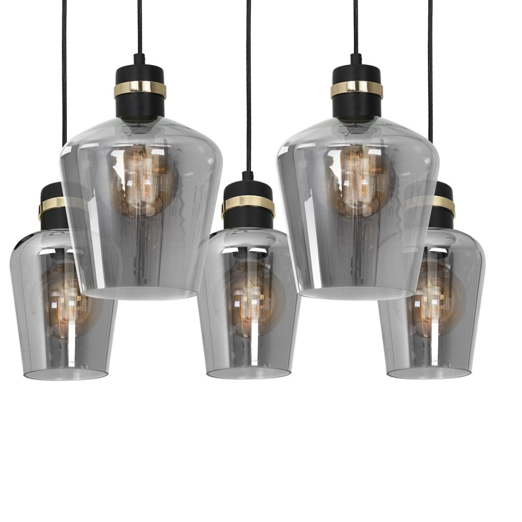 RICHMOND függőlámpa 5xE27 füstölt üveg arany betétek MLP6543 Milagro fém + üveg