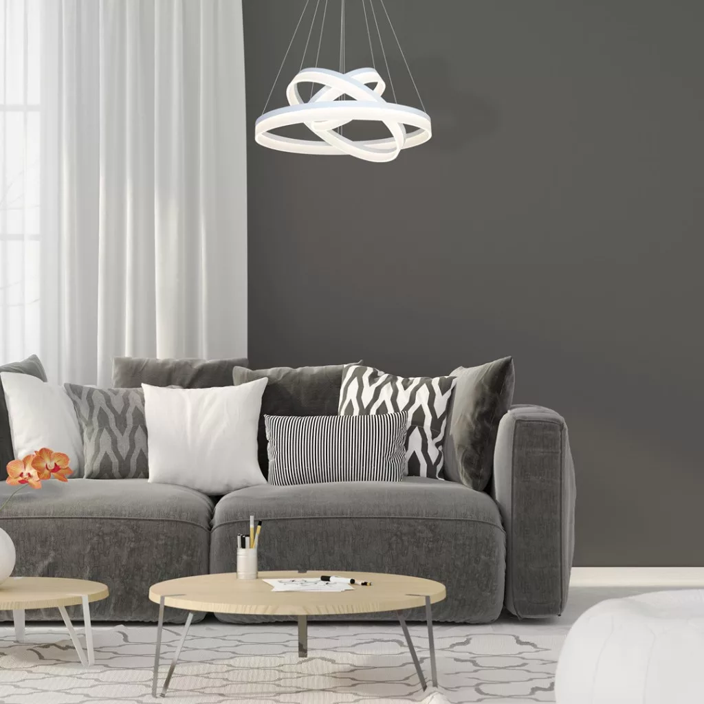 RING 4080 függesztett lámpa három kör fehér 114W LED + TÁVIRÁNYÍTÓ IP20 Fém és akril modern stílusú Milagro