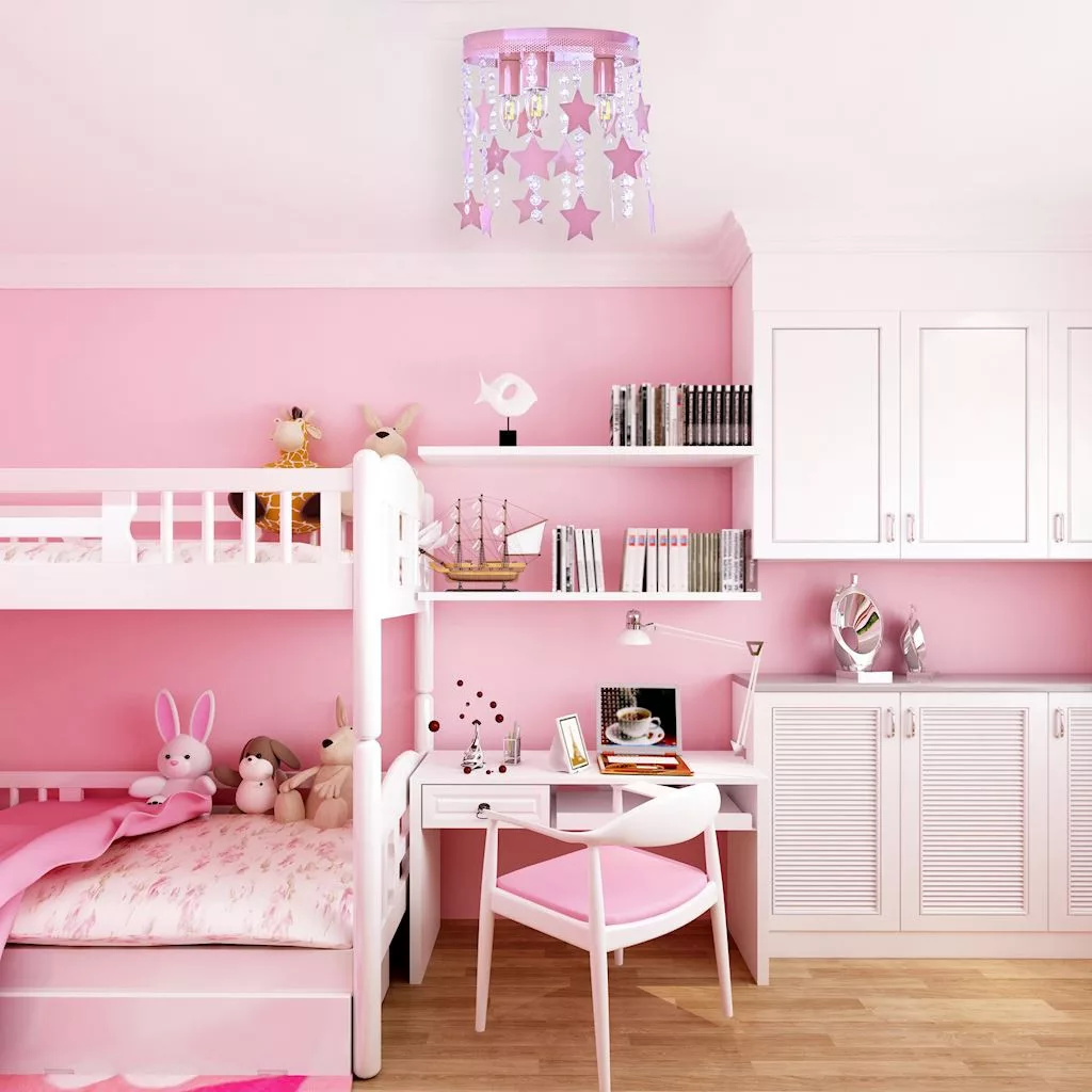 Rózsaszín gyermek mennyezeti lámpa Csillár gyerekeknek Stars STAR 3x E27 Fém és kristályok Milagro