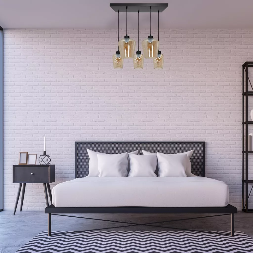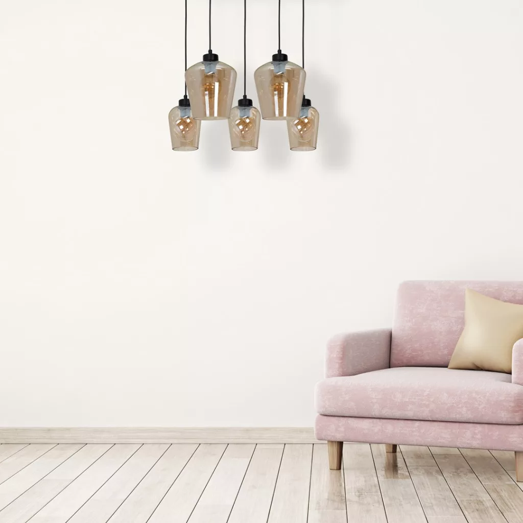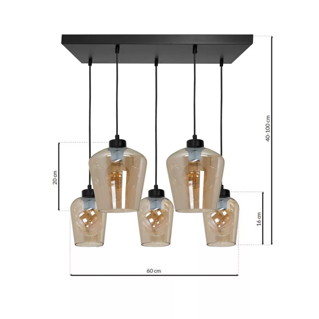 SANTIAGO függőlámpa 5xE27 Borostyán Üvegbúra MLP6617 Fém + Üveg
