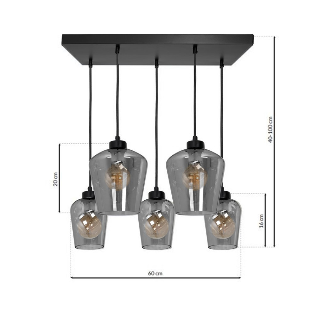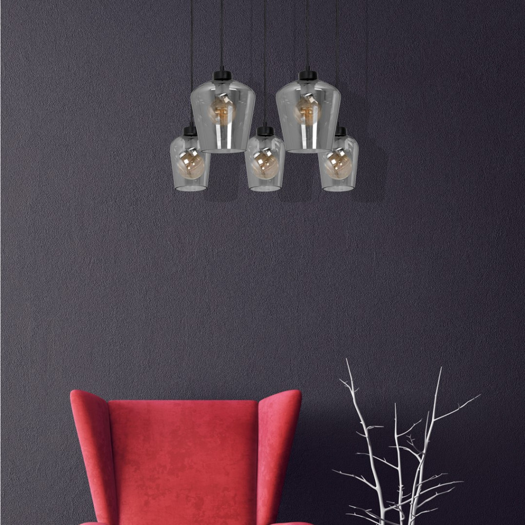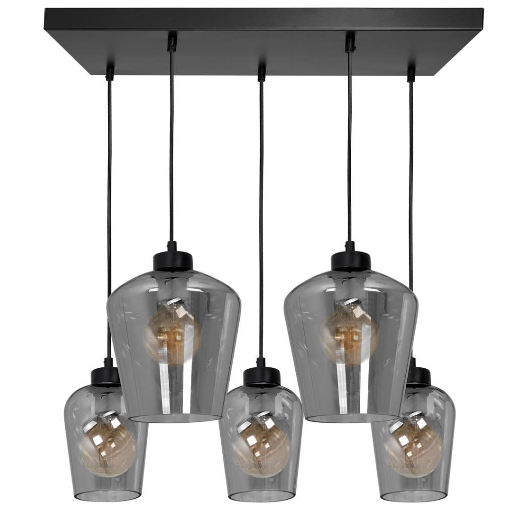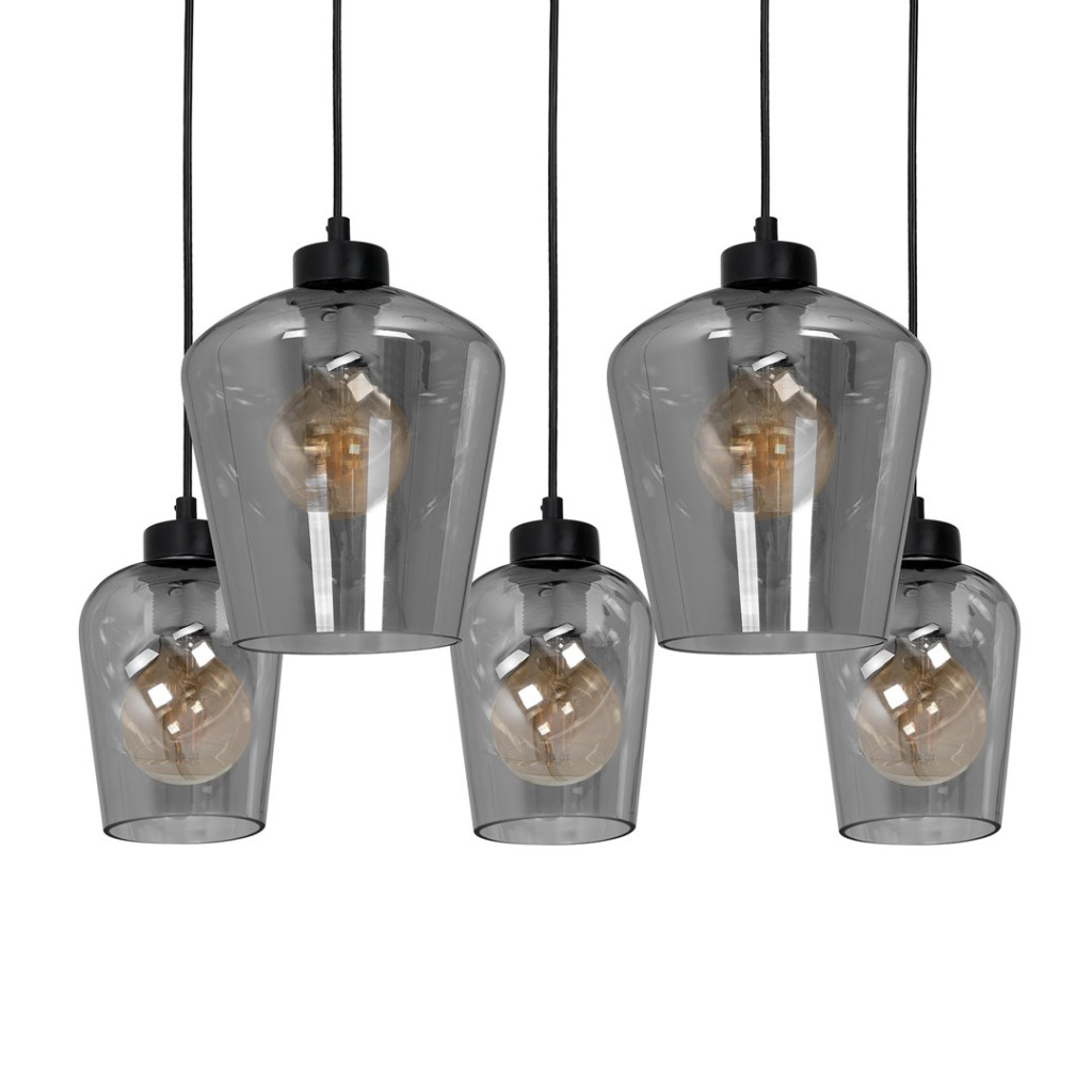 SANTIAGO függőlámpa 5xE27 ernyő füstölt üveg MLP6616 fém + üveg