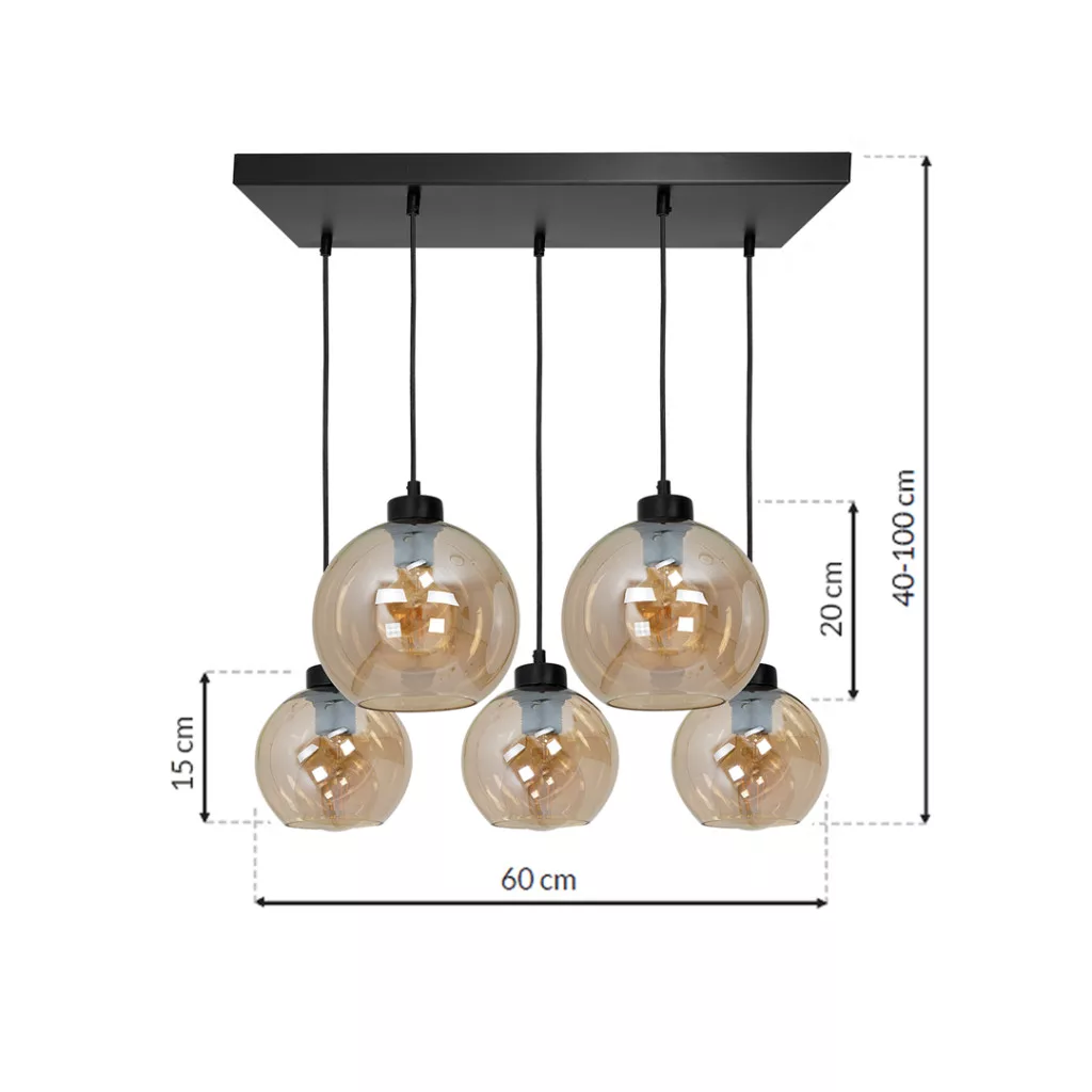 SOFIA függőlámpa 5xE27 MLP6592 Borostyán gömb lámpaernyő Milagro Metal + Glass