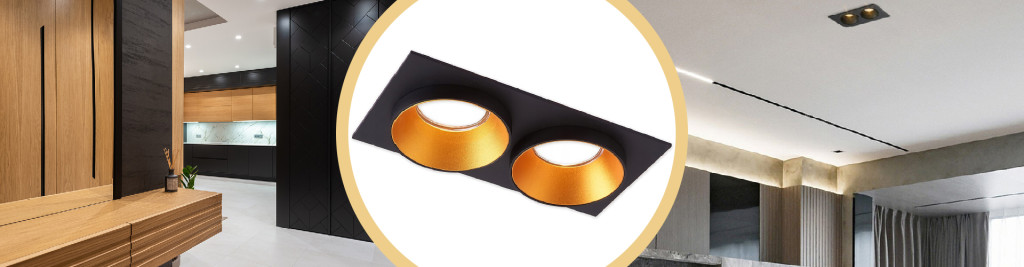 SPOT 2x GU10 téglalap alakú fekete arany süllyesztett dupla süllyesztett lámpatest