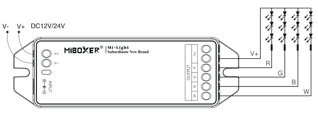 Vezérlő RGB+W LED szalag vezérlő 12/24V 12A Mi-Light Wi-Fi FUT038M