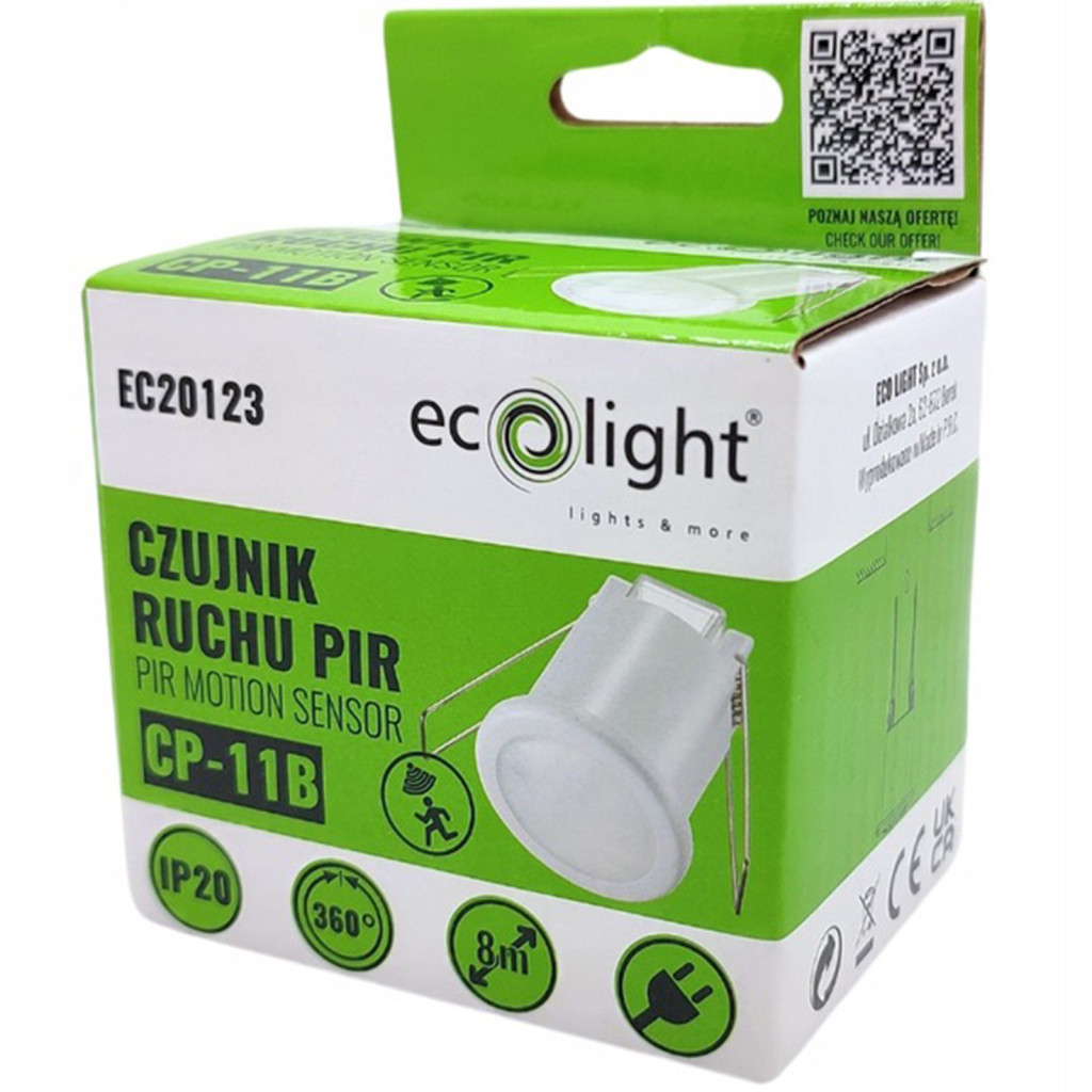 PIR mozgás- és szürkületérzékelő, süllyesztett 360°, 8 m, beltéri fehér
