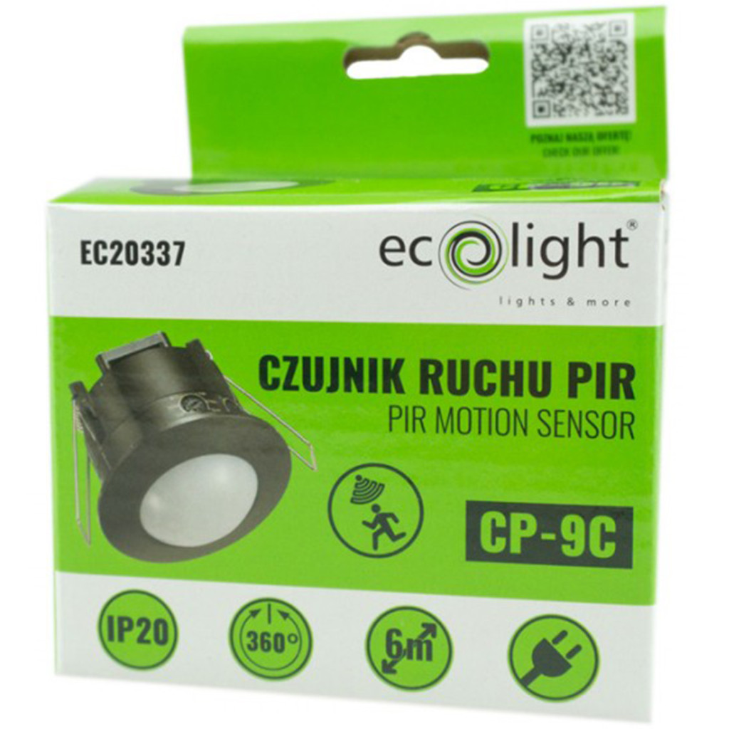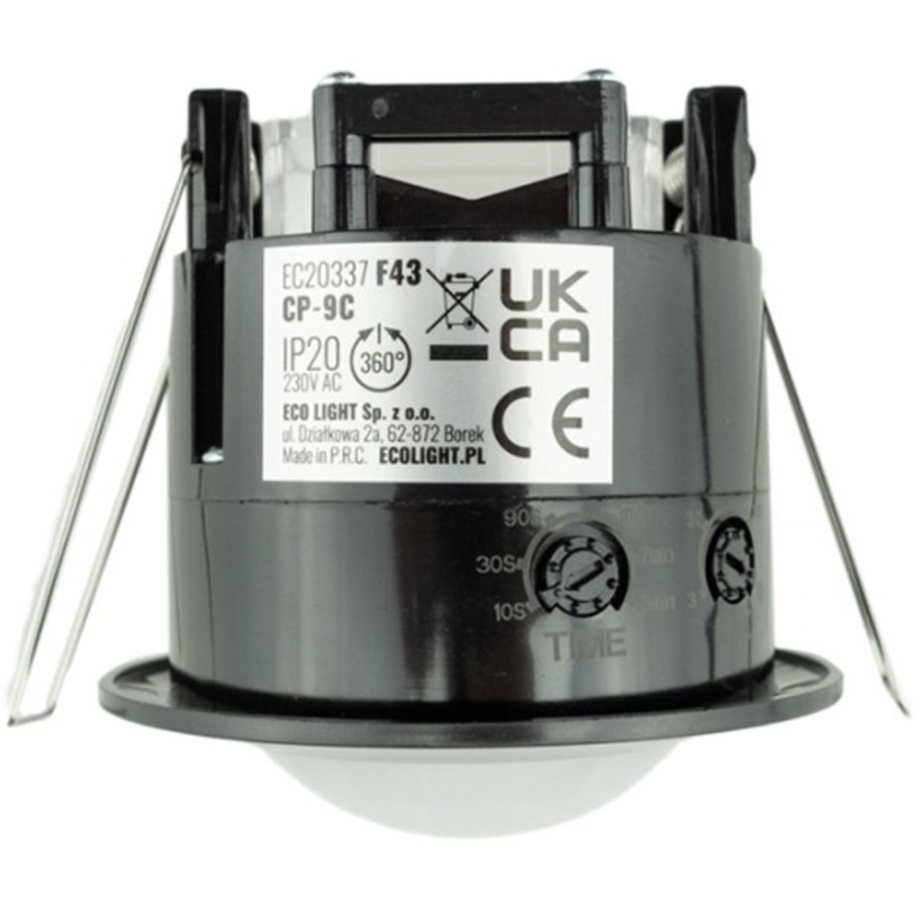 PIR mozgás- és szürkületérzékelő, süllyesztett, 360°, 6 m, beltéri, fekete