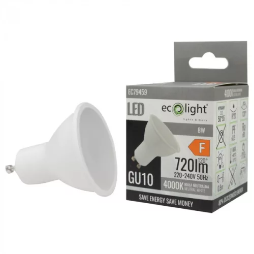 LED izzó spotlámpa GU10 8W 720lm 4000K semleges Ecolight