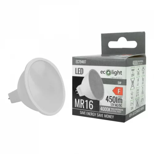 LED izzó reflektor MR16 GU5.3 5W 400lm 4000K semleges 12V Ecolight