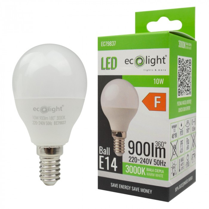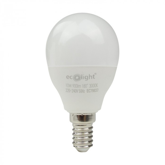 LED izzó gömb alakú P45 E14 10W 900lm 3000K meleg fényű ökofény