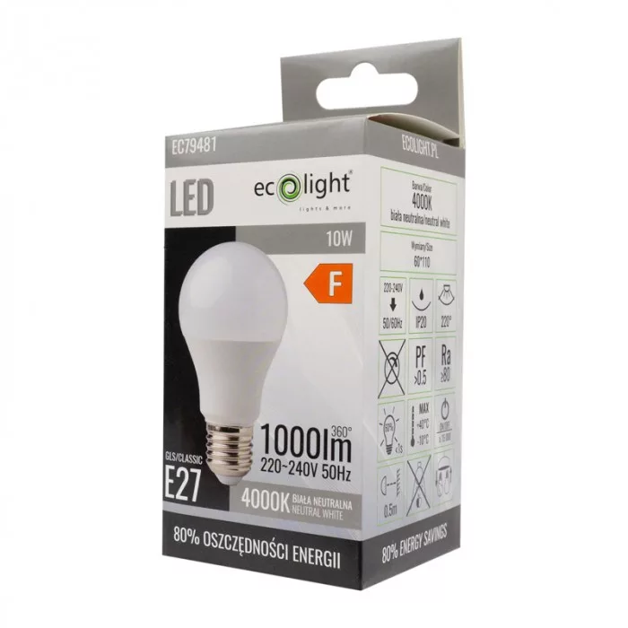 LED izzó A60 E27 10W 900lm 4000K semleges Ecolight