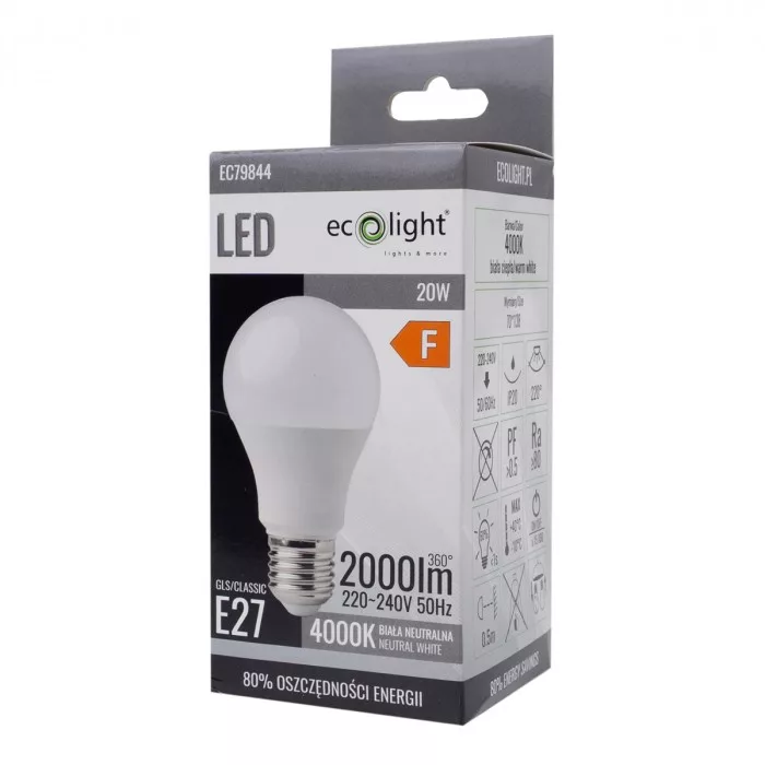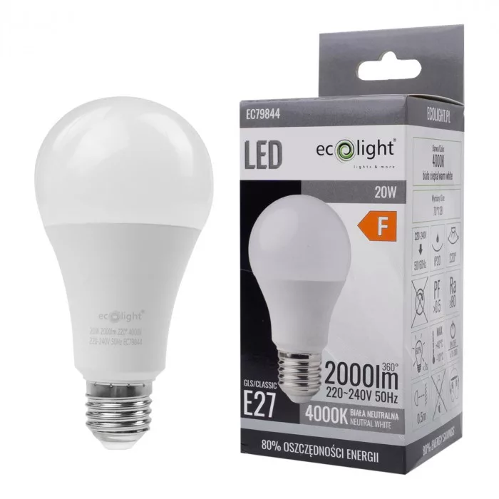 LED izzó A60 E27 20W 1800lm 4000K Semleges Ecolight