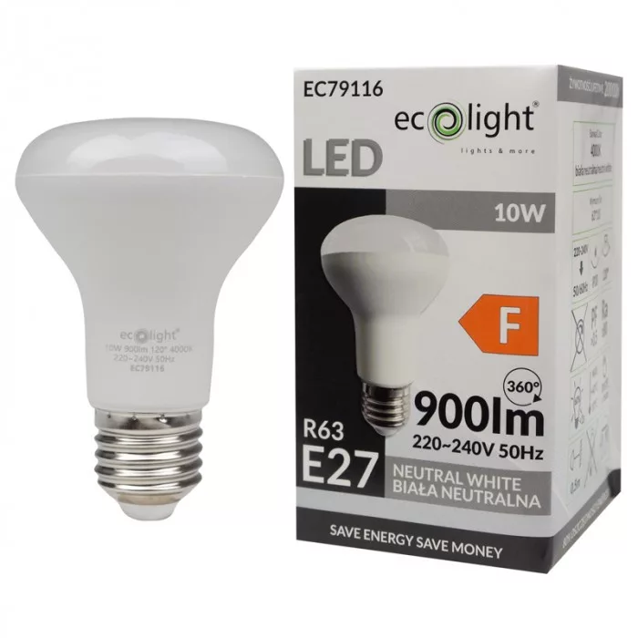 LED izzó reflektor R63 E27 10W 900lm 4000K semleges Ecolight
