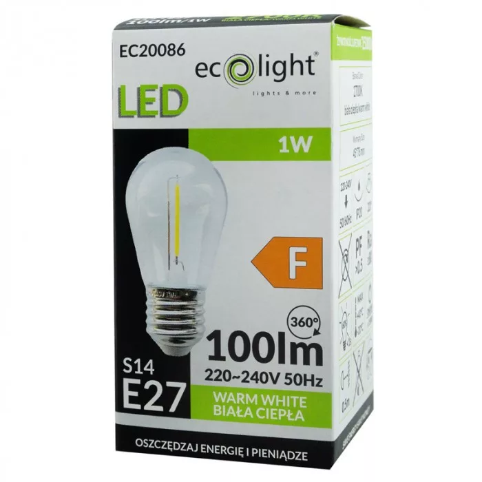Edison LED izzó S14 E27 1W 60lm 2700K Meleg izzószálas Ecolight