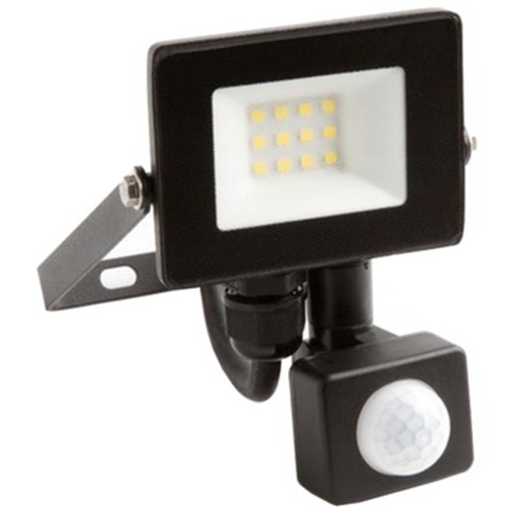 LED reflektor 10W 900lm 6500K IP65 fekete mozgásérzékelővel