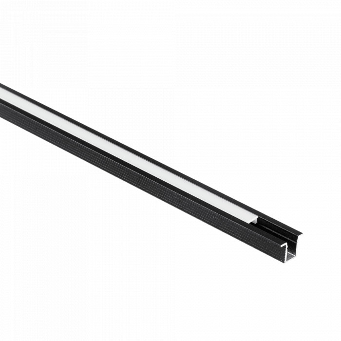 Süllyesztett alumínium LED profil, fekete, 2m, matt borítással LED szalagokhoz + végzárókkal, PW Ecolight sorozat