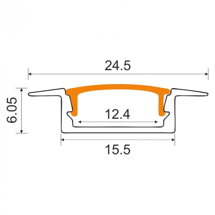 Süllyesztett alumínium LED profil fehér 1m matt borítással LED szalagokhoz + végzárókkal Ecolight P sorozat