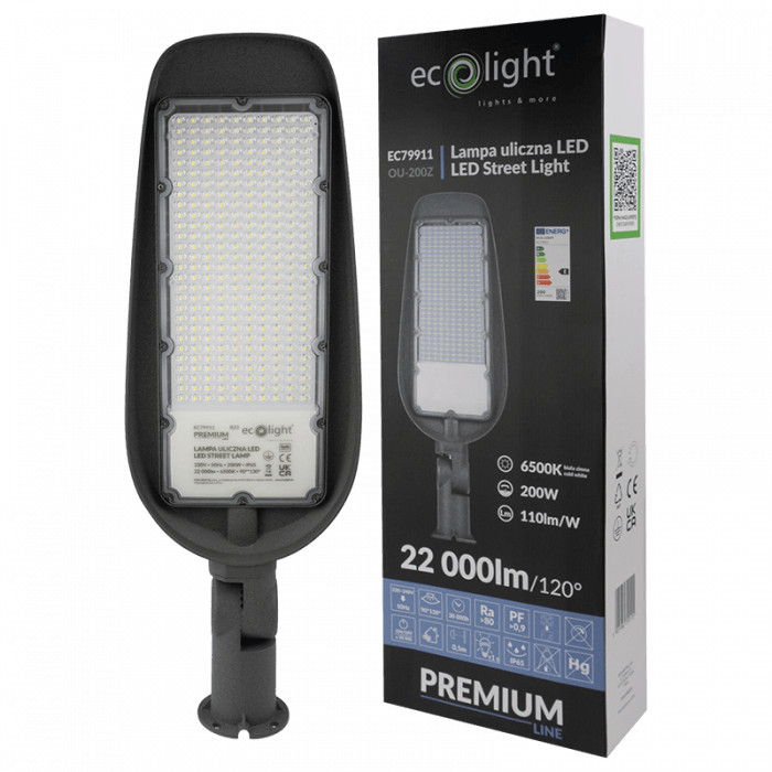 LED utcai lámpa 200W 22000lm 6500K Hidegfény IP65 110lm/W PREMIUM Ecolight
