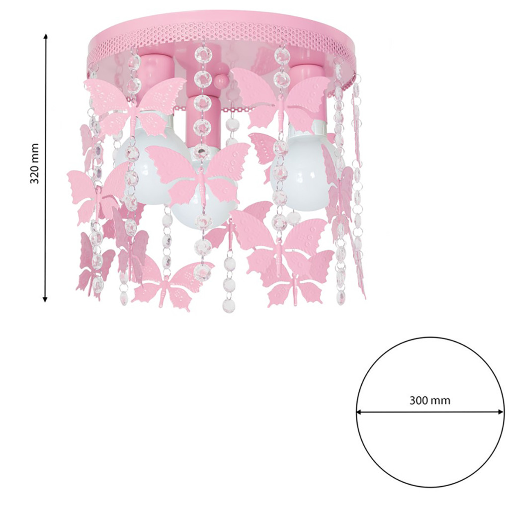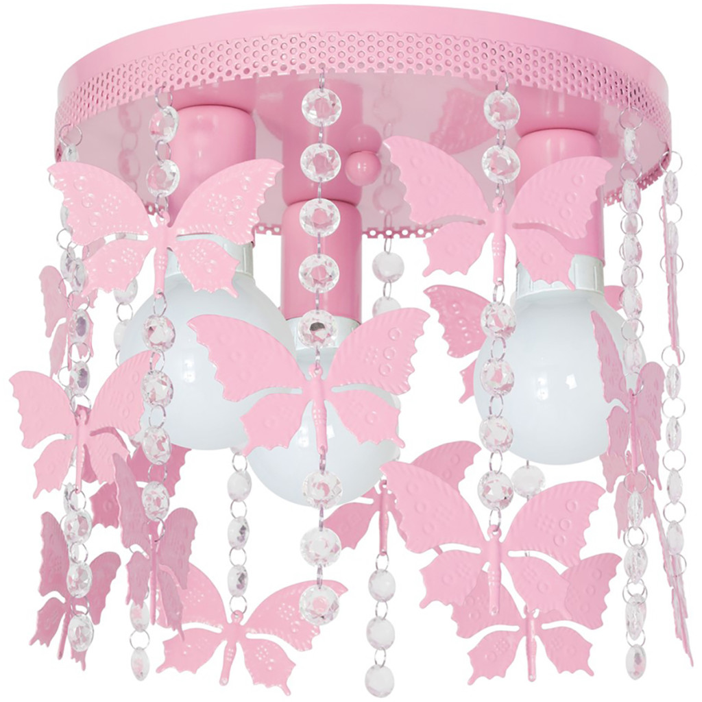 Gyermek mennyezeti lámpa púder rózsaszín ANGELICA Butterfly csillár 3x E27 Fém és kristályok Milagro