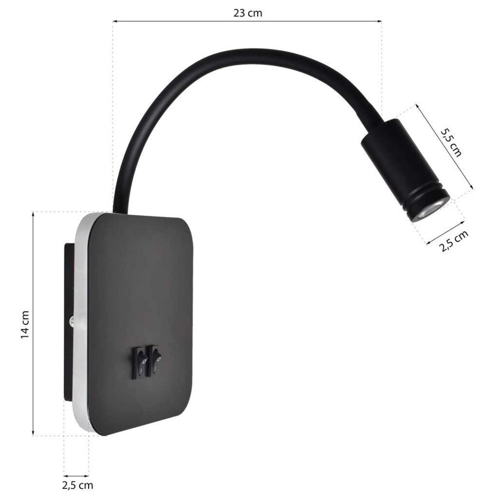 BASE 8W + 2W Rugalmas fekete Milagro fali éjjeli lámpa