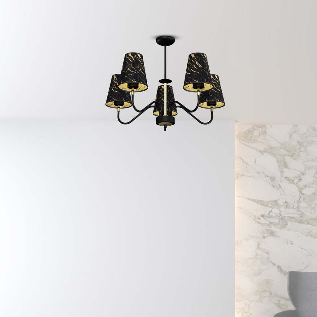 HERMES Fekete arany függő mennyezeti lámpa 5xE27 Milagro