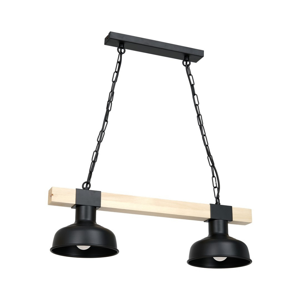 FARO fekete natúr fából függő mennyezeti lámpa 2xE27 60W Milagro