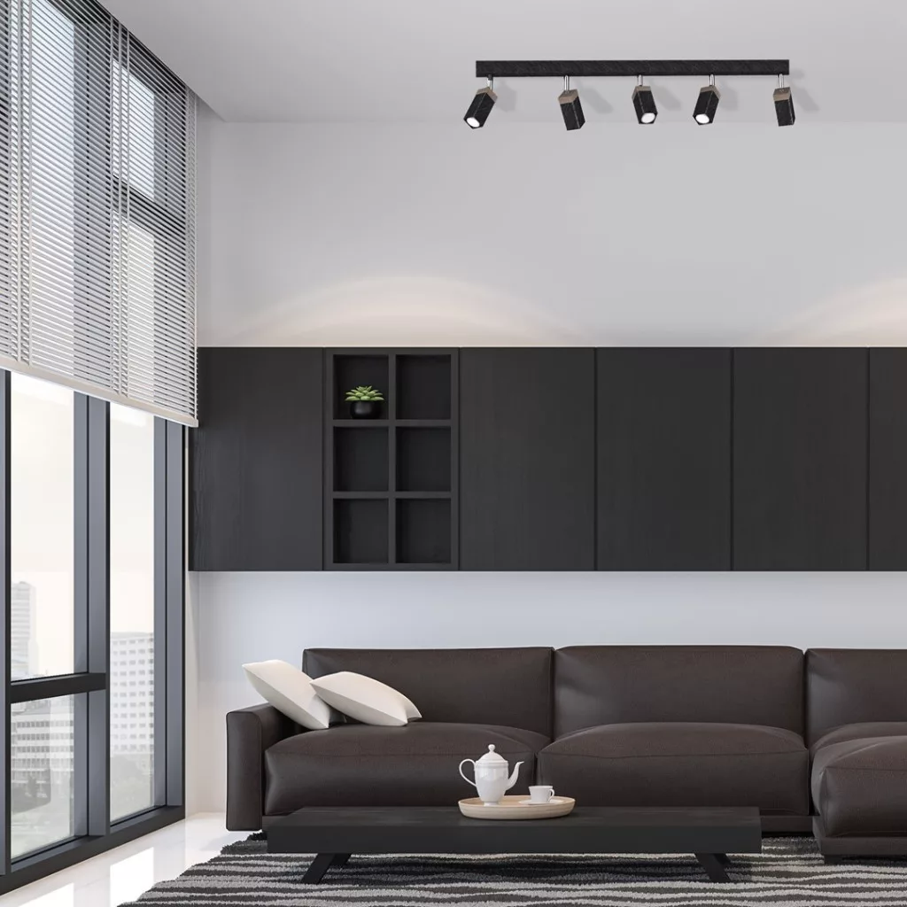 SOLO SAWN Mennyezeti lámpa Fekete Patina Fa 5x mini GU10 Milagro