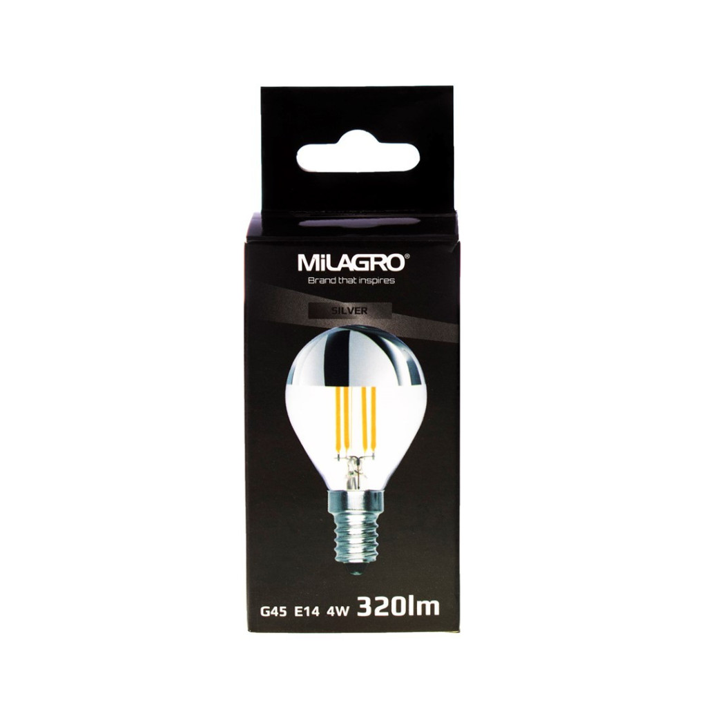 LED izzó E14 4W G45 TOP ezüst meleg 2700K izzószál ezüst Milagro