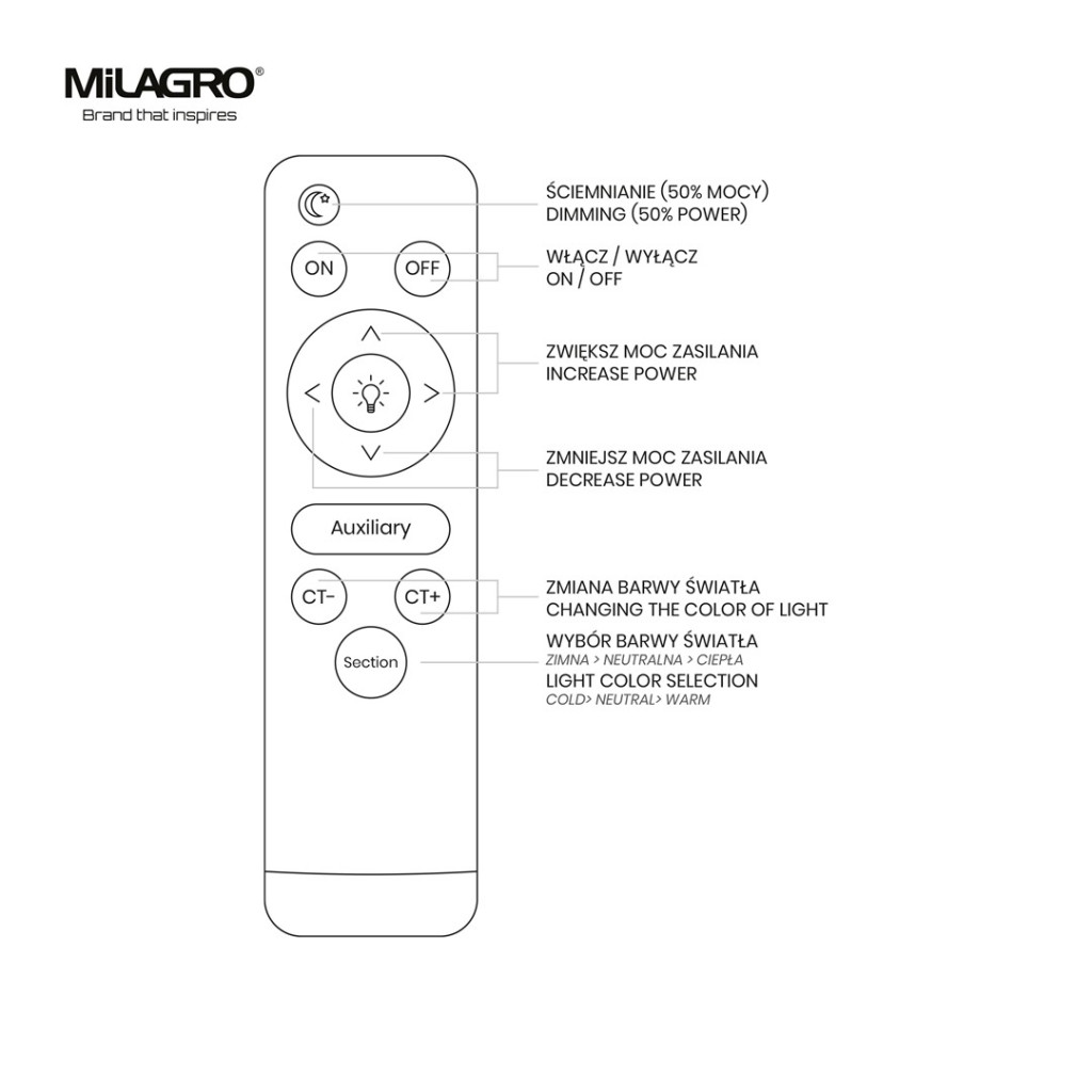 LED felületre szerelhető mennyezeti lámpa OPTIMA fekete 52W LED Ø480 mm Milagro
