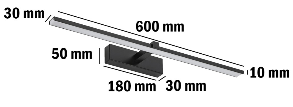 LED fürdőszobai tükörvilágítás 12W 840lm fekete semleges 60 cm