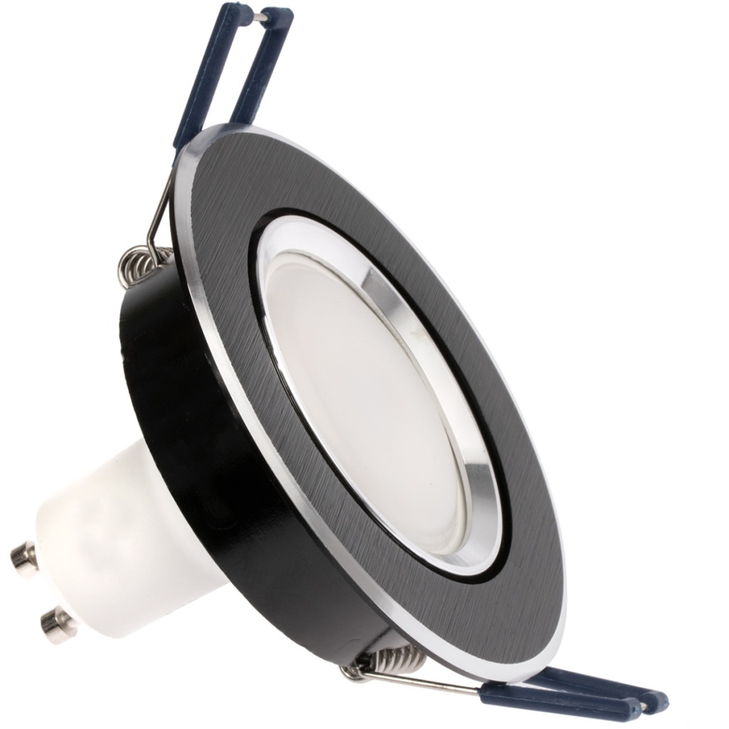 HALOGÉN lámpatest, süllyesztett, mozgatható, kerek, fekete, szálcsiszolt, GU10