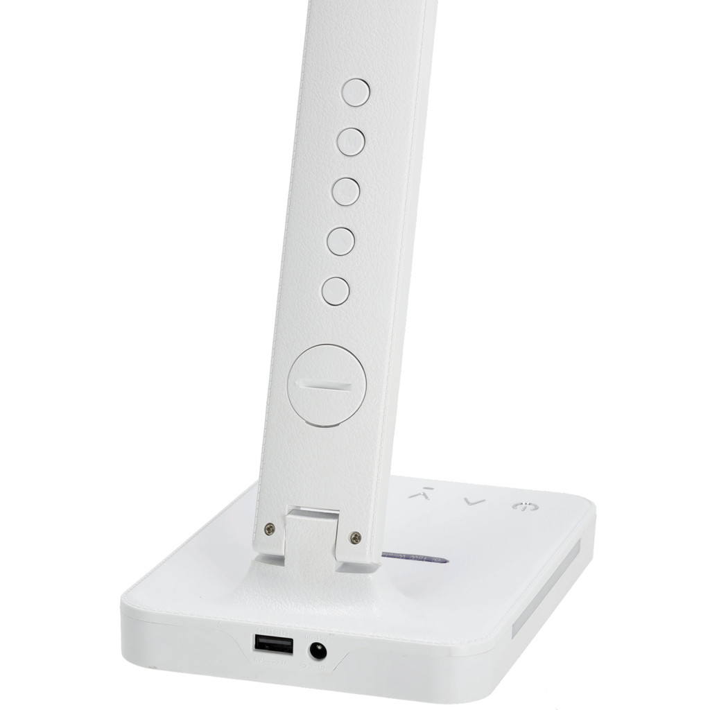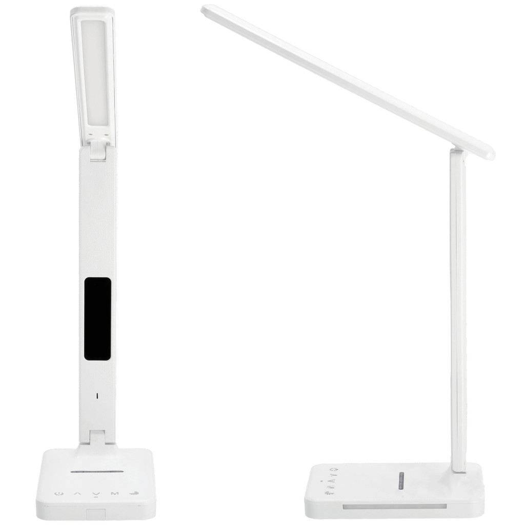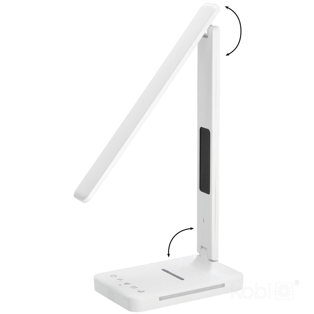 LED asztali lámpa kijelzővel, töltővel, ébresztőórával, CCT DIM, fehér, Kobi