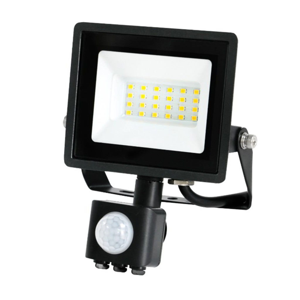 LED reflektor halogén 20W 1620lm 4000K IP65 fekete mozgásérzékelő MH Kobi