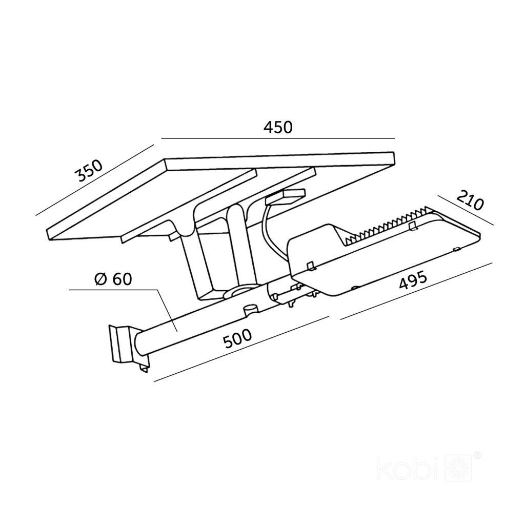 Napelemes LED utcai lámpa, ipari, közúti lámpatest, 11W, 1100lm, 4000K, semleges, alkonykapcsolós, IP54, fekete, Solit Kobi