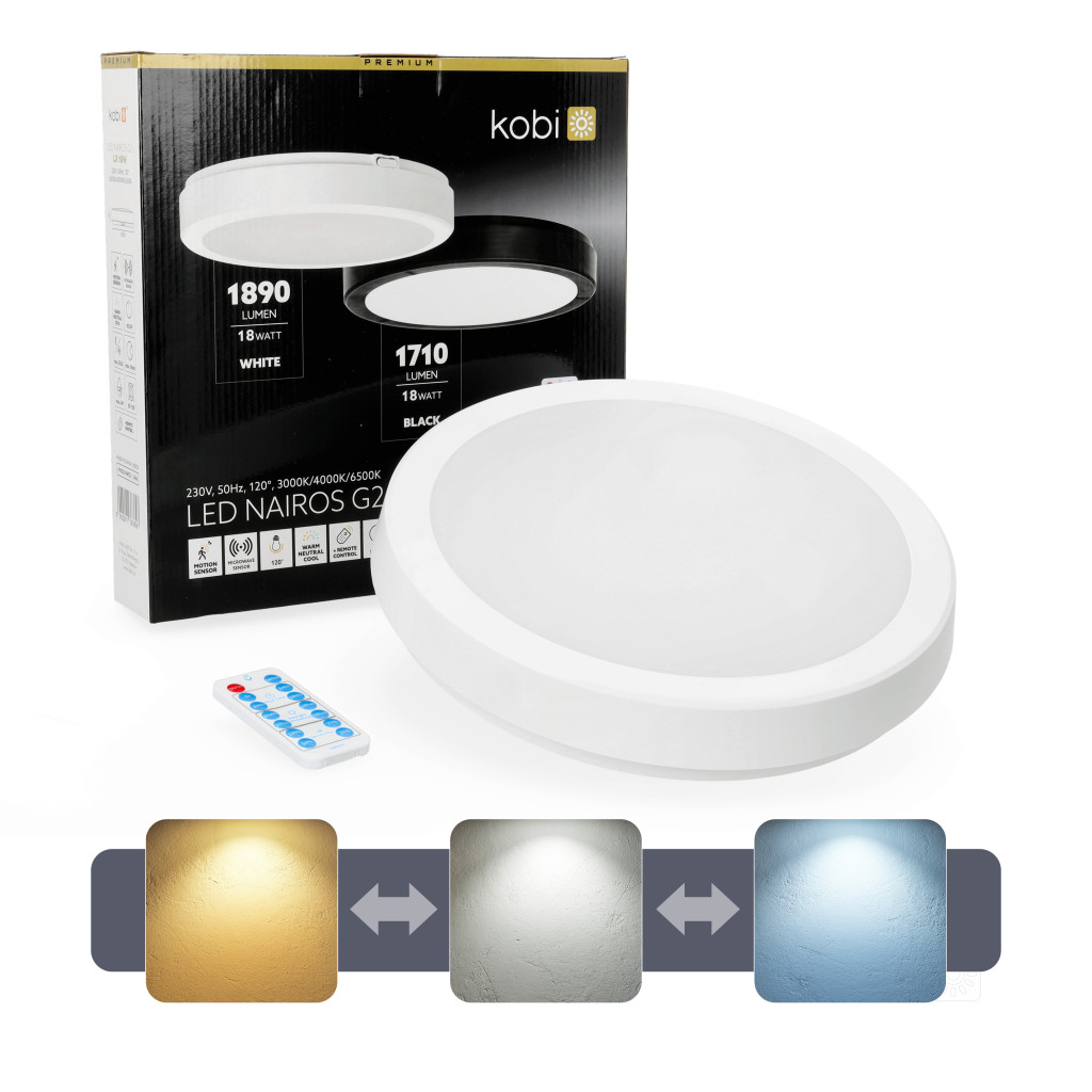 LED fürdőszobai mennyezeti lámpa, 18W, 1890lm, 4000K, 120°, mozgás- és alkonyérzékelővel, fehér, IP65, Nairos Kobi