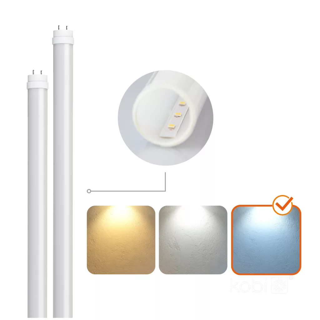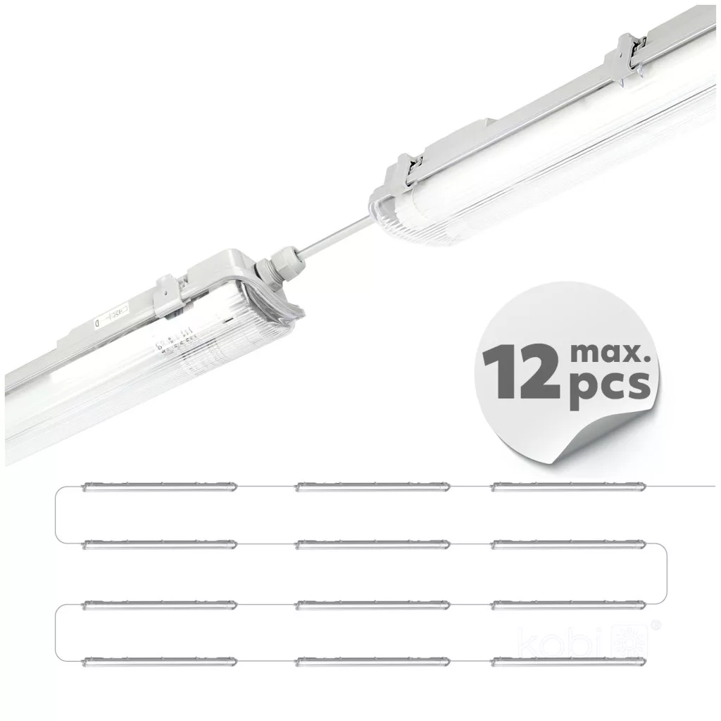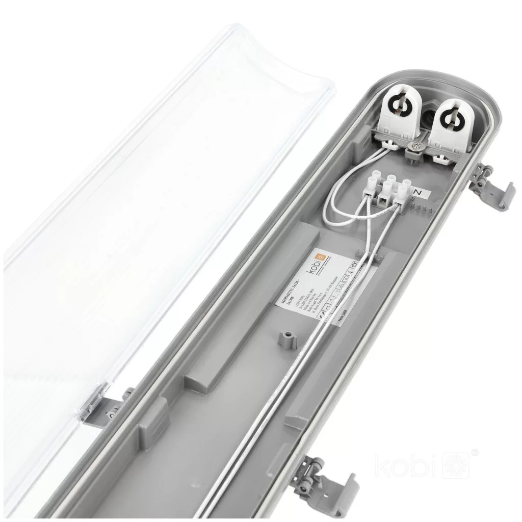 Lámpakészlet: Hermetikus ipari lámpatest G2 + 2x LED fénycső T8 18W 120cm 6500K Hideg IP65 Kobi