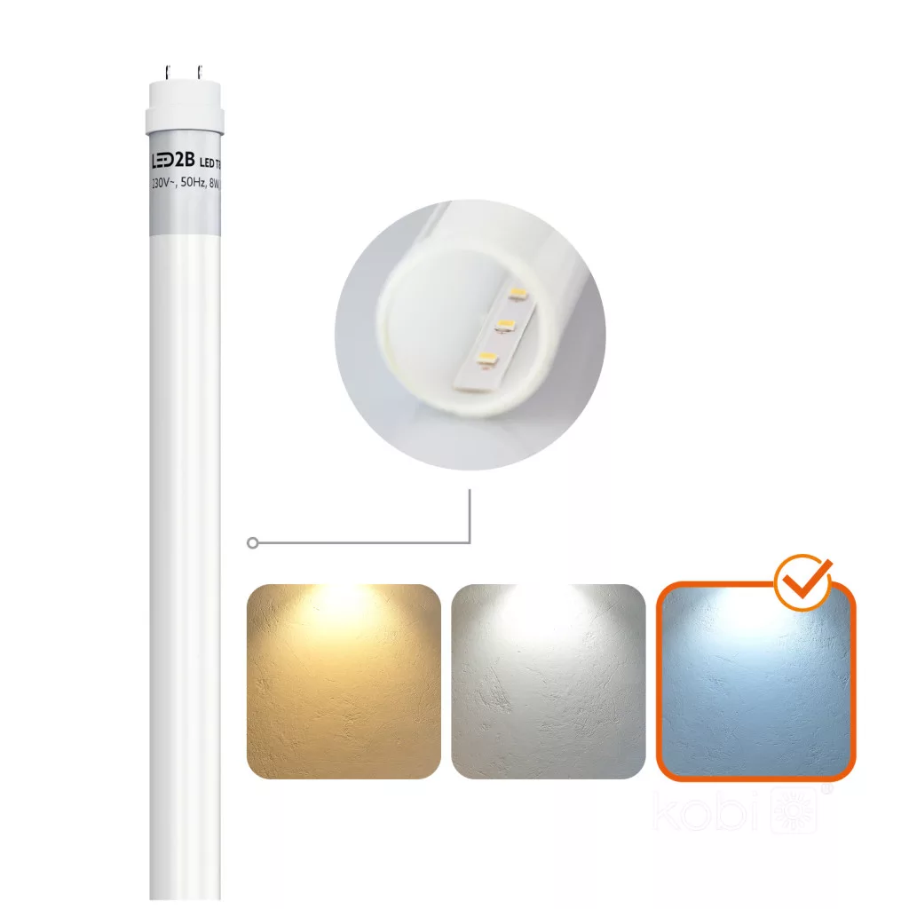 LED fénycső T8 9W 900lm 6500K Hideg 240° 60cm LED2B Kobi
