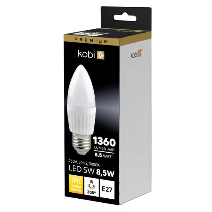 LED izzó E27 gyertya B35 8.5W 1360lm 3000K Meleg 200° Kobi Prémium