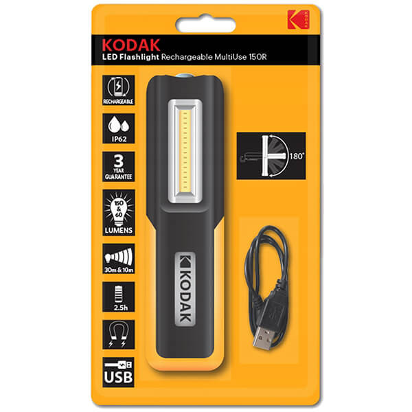Többfunkciós LED zseblámpa, újratölthető USB MULTIUSE 150lm IP62 KODAK zseblámpa
