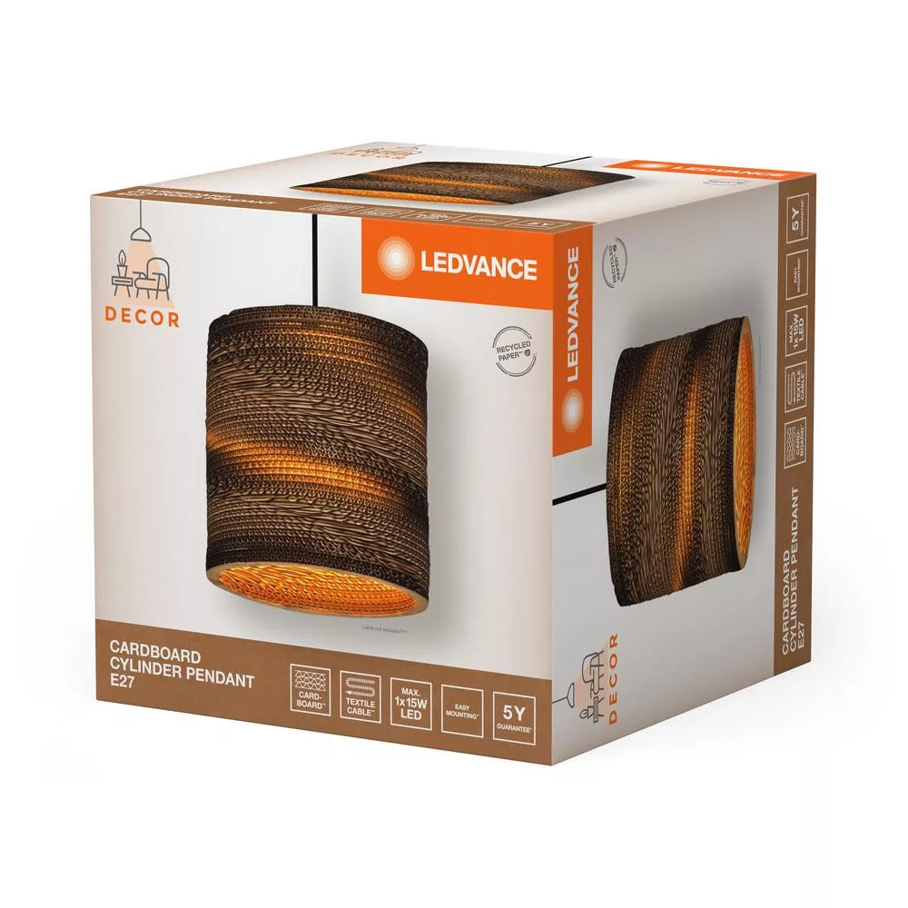 Dekoratív mennyezeti lámpa E27, függő, barna kartondekorációval, Ledvance