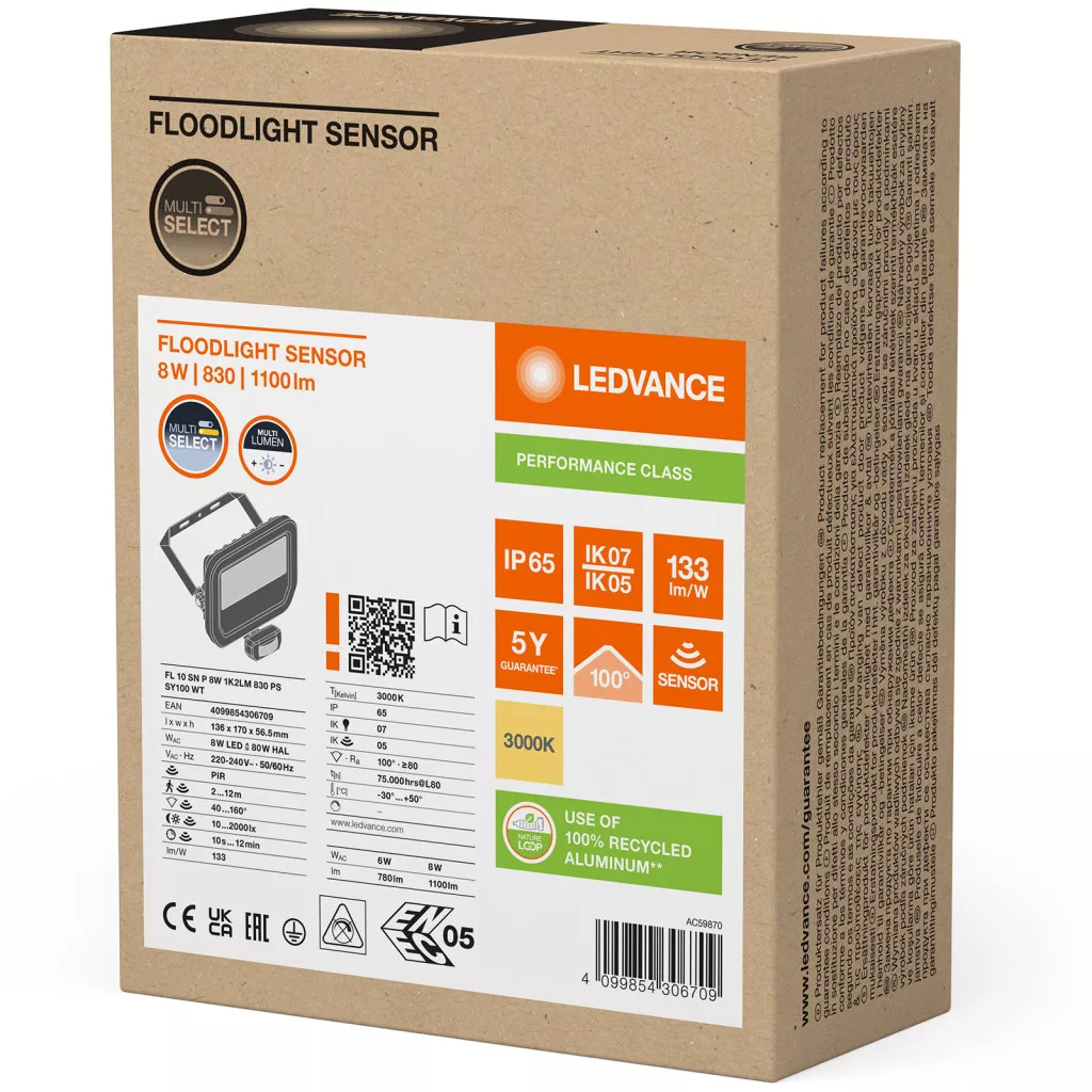 LED-es reflektor 8W 1100lm 3000K IP65 fehér mozgásérzékelővel LEDVANCE reflektor