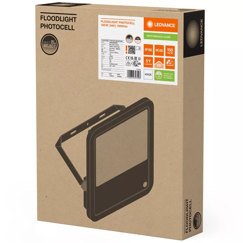 LED-es reflektor 100W 15000lm 4000K IP66 fekete alkonyérzékelővel LEDVANCE reflektor