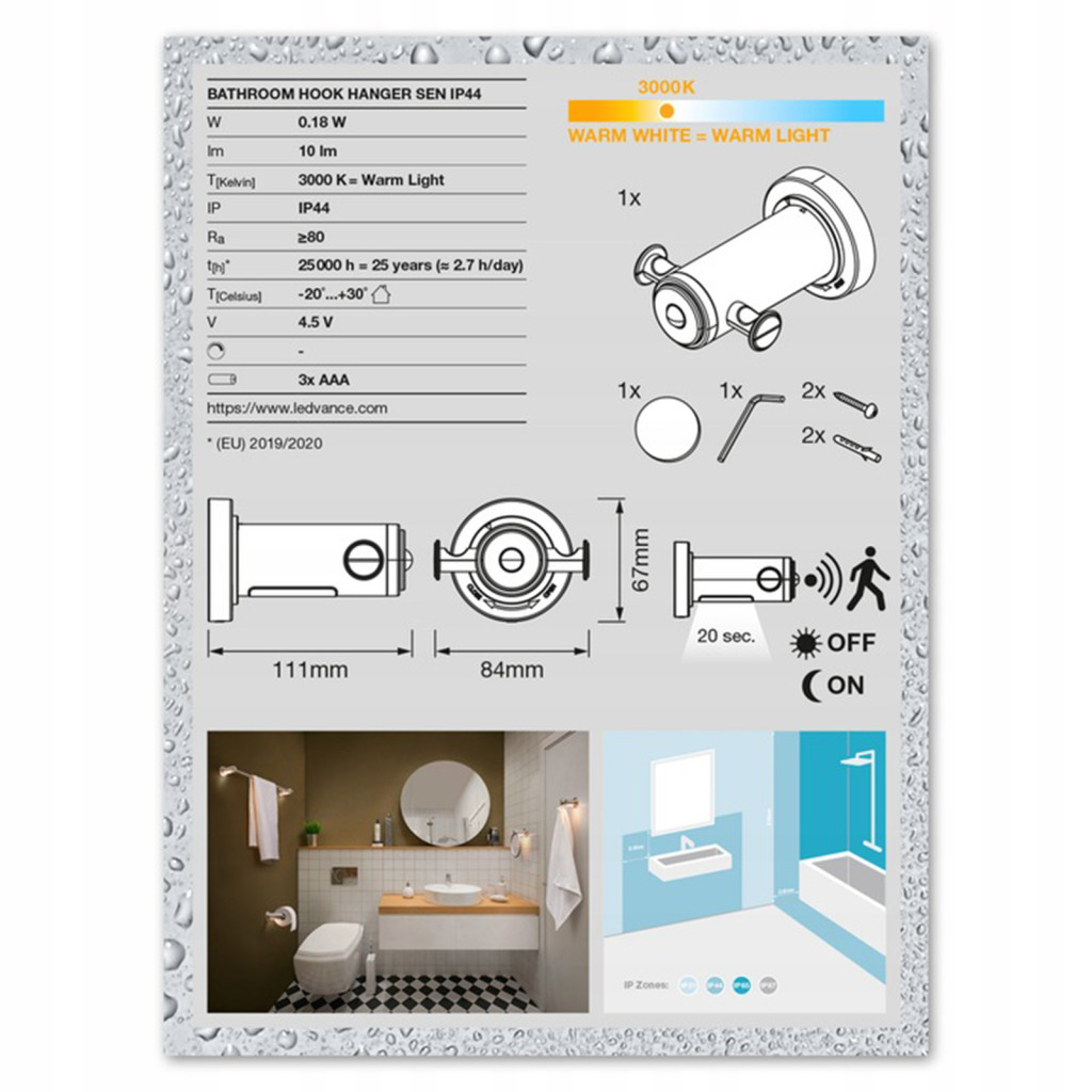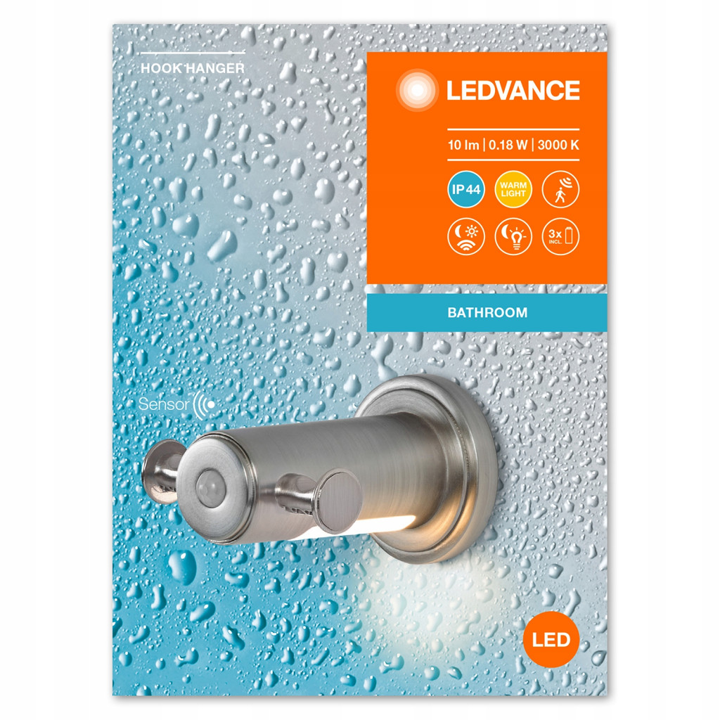 LED törölközőtartó kampós tartó LEDVANCE mozgásérzékelővel