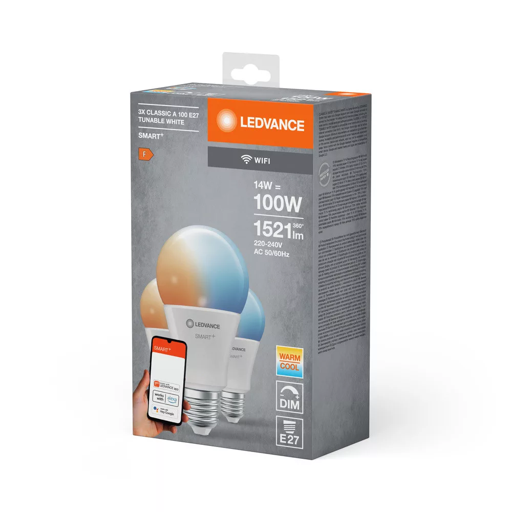 LED izzó E27 14W = 100W 1521lm CCT szabályozható fényerejű SMART+ WiFi Classic Ledvance