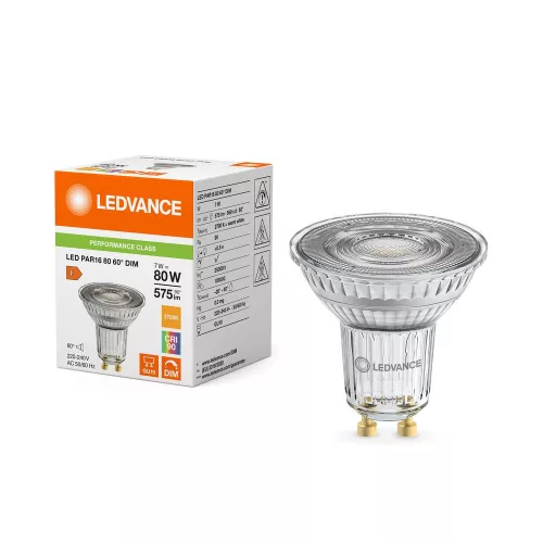 LED izzó spotlámpa GU10 PAR16 7W = 80W 575lm 2700K Meleg 60° CRI90 Szabályozható Ledvance