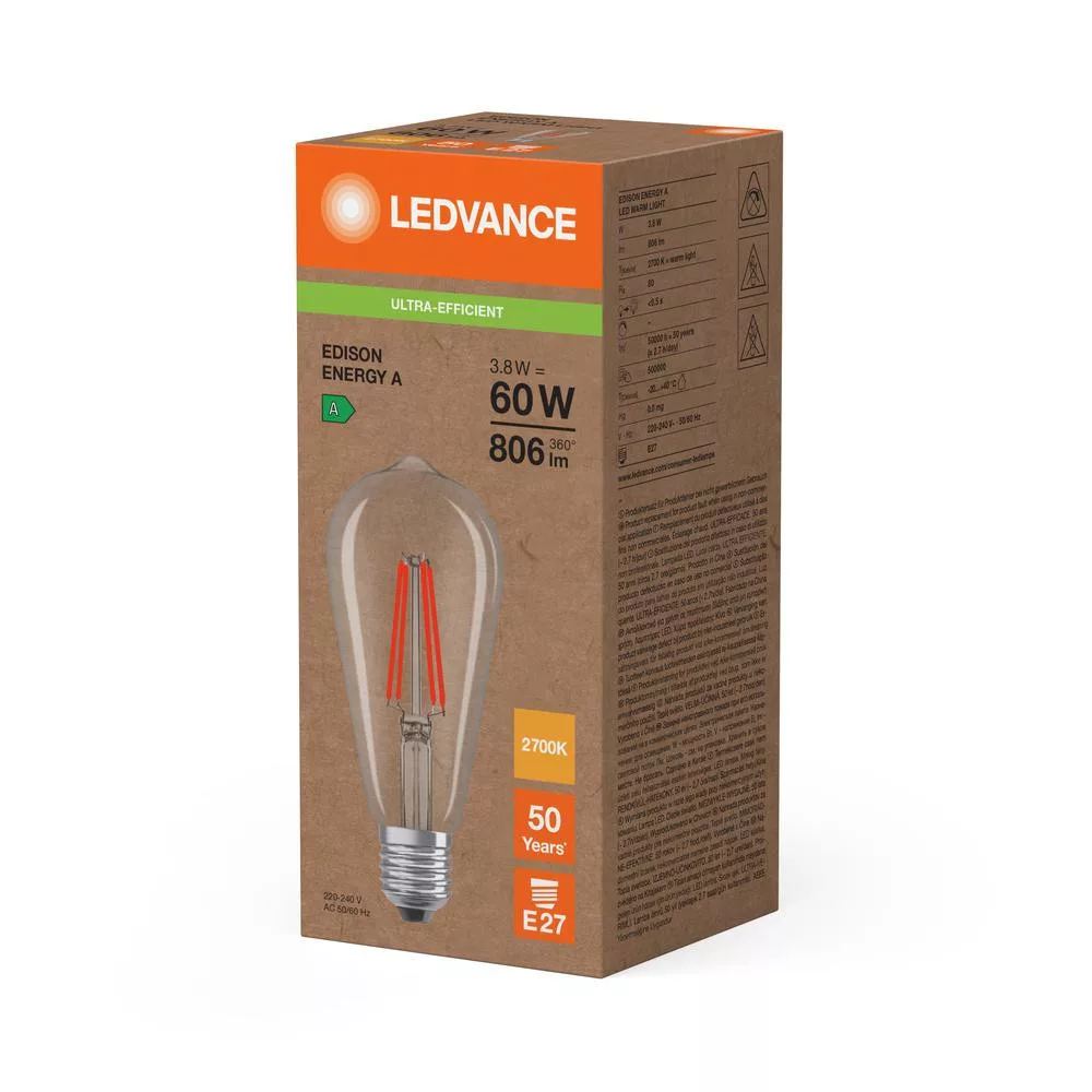 Edison LED izzó E27 ST64 3.8W = 60W 806lm 2700K Meleg 300° Ledvance