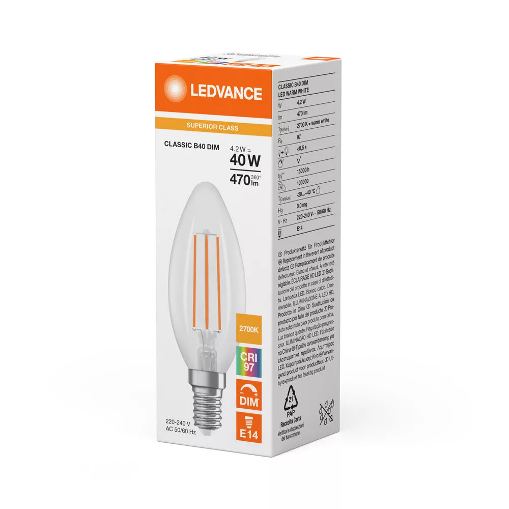 LED izzó B35 E14 4,2W = 40W 470lm 2700K meleg fehér DIMMÁLHATÓ SZÓLÁS LEDVANCE
