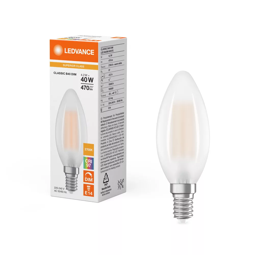 LED izzó B35 E14 4,2W = 40W 470lm 2700K meleg fehér SZÍNÁZÁS DIMMÁLHATÓ LEDVANCE