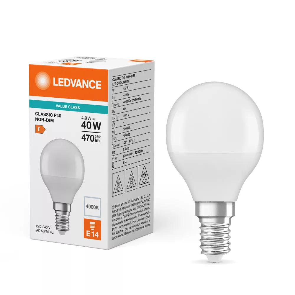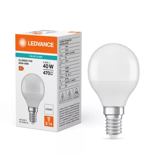 LED izzó P45 E14 4,9W = 40W 470lm 4000K semleges fehér LEDVANCE