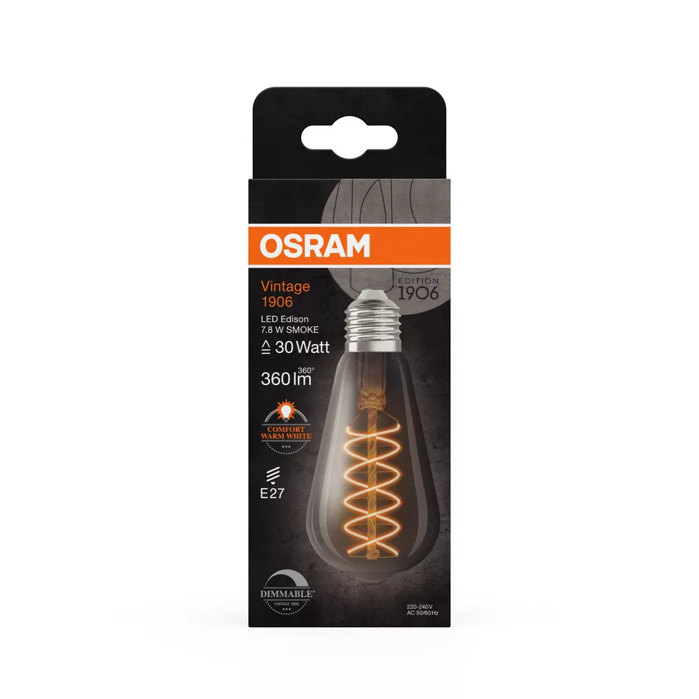 LED dekoratív izzó ST64 Edison E27 7.8W = 30W 360lm 1800K Meleg 320° Füstölt Izzószálas Szabályozható Vintage 1906 Osram