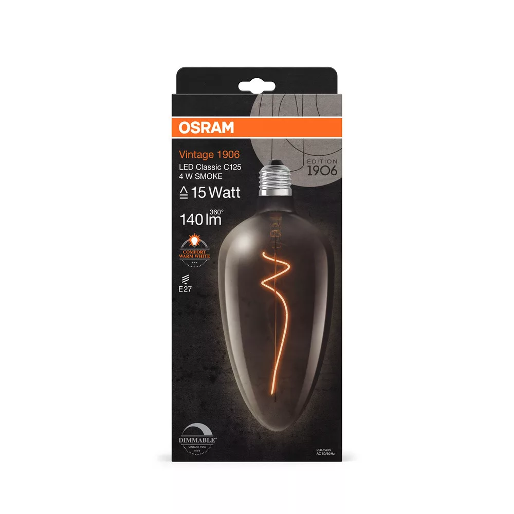 Dekoratív LED izzó E27 4W = 15W 140lm 1800K Meleg 300° Füstölt, szabályozható fényerővel Vintage 1906 Osram